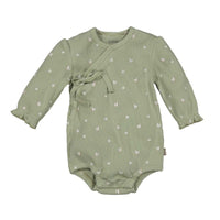De lange mouwen met kleine ruffle aan de uiteinden geven dit item een charmante en meisjesachtige uitstraling. De lichtgroene kleur vormt een rustige basis en is eenvoudig te combineren met andere items uit de Bess collectie, zoals een broekje of vestje. De drukknoopjes aan de onderzijde maken verschonen extra handig en comfortabel.
