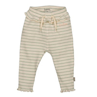 De rucherand aan de bovenkant en de kleine geribde randjes aan de pijpen geven de broek een schattige, meisjesachtige uitstraling. De lichte kleur en fijne streep maken dit item makkelijk te combineren met een romper, shirtje of vestje uit de BESS collectie. Perfect voor dagelijks gebruik, van thuis tot onderweg.