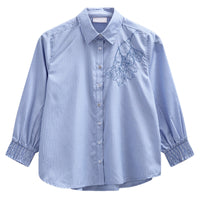 Vista Blue met offwhite embroidery shirt Evalina
