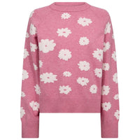 Wild Orchid met offwhite jacquard pullover Alpi van Freequent voor dames. Deze zachte trui brengt direct een vrolijke en frisse uitstraling in je garderobe dankzij het speelse jacquard dessin met bloemen. De wild orchid kleur geeft een warme en vrouwelijke touch, terwijl de offwhite accenten het geheel luchtig en evenwichtig houden. De ronde hals en raglanmouwen zorgen voor een comfortabele pasvorm die moeiteloos met je meebeweegt in het dagelijks leven.