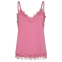 Wild Orchid straptop met kant Bicco van Freequent voor dames. Deze straptop heeft een vrouwelijke en elegante uitstraling dankzij de warme wild orchid roze kleur en de verfijnde kanten details. De v-hals is afgewerkt met kant wat de top een romantische en luxe look geeft. De smalle schouderbandjes zijn verstelbaar zodat de top mooi aansluit en prettig draagt. Door het tijdloze en stijlvolle ontwerp is dit item zowel geschikt om solo te dragen als om te combineren in laagjes.