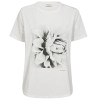 Wit t-shirt Sure van Freequent voor dames. Dit t-shirt is voorzien van korte mouwen en een ronde hals voor een klassieke en comfortabele pasvorm. De witte basis wordt subtiel verrijkt met een verfijnde grijze bloemenprint op de borst, wat zorgt voor een elegante en vrouwelijke uitstraling. Gemaakt van een zachte, ademende stof die prettig draagt.
