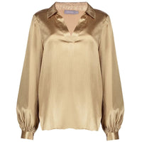 Gouden v-hals satijn blouse 53530