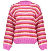 De roze gestreepte pullover 54565 van Geisha is een veelzijdig item dat je het hele jaar door kunt dragen. Combineer met lichte denim voor een frisse look of kies voor ton-sur-ton tinten voor een trendy, harmonieuze outfit.
