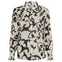 Offwhite geprinte blouse Vibse van I Say voor dames. Deze elegante blouse heeft een lichte, transparante stof die zorgt voor een verfijnde en vrouwelijke uitstraling. De losvallende pasvorm geeft de Vibse blouse een ontspannen silhouet dat sierlijk om het lichaam valt. De offwhite kleur met subtiele print zorgt voor een frisse, moderne look die gemakkelijk te dragen is bij elke gelegenheid. Dankzij de klassieke knoopsluiting en de spitse kraag behoudt de blouse een tijdloze elegantie die typisch is voor I Say.