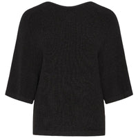 Zwarte glitter knit pullover Cody van ICHI voor dames. Deze elegante trui combineert een subtiele glans met een modern, vrouwelijk ontwerp. De verfijnde glitterdraad in de stof zorgt voor een chique uitstraling die het licht op een subtiele manier vangt. De halflange mouwen en de elegante ronde hals met kleine uitsparing geven de Cody pullover een eigentijdse twist. Dankzij de soepele, gebreide stof voelt de trui zacht aan op de huid en biedt hij een comfortabele pasvorm die perfect is voor zowel dagelijks gebruik als feestelijke momenten.