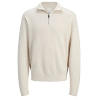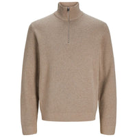 Beige knit sweater Blamilano zip van Jack & Jones voor heren. Deze gebreide trui combineert stijl, comfort en kwaliteit in één tijdloos ontwerp. De flat knit structuur zorgt voor een soepele en comfortabele pasvorm, terwijl de kwart ritssluiting en hoge kraag een moderne, sportieve uitstraling geven. Dankzij het gebruik van 50% biologisch katoen voelt de sweater niet alleen zacht aan, maar is hij ook een duurzamere keuze voor jouw garderobe.
