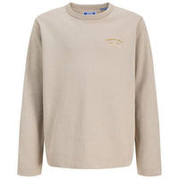 Khaki crew neck sweater Upstate Graphic van Jack & Jones voor jongens. Deze sweater heeft een stoere en eigentijdse uitstraling en is perfect voor dagelijks gebruik. De warme khaki kleur geeft het item een rustige basis, terwijl de subtiele print op de borst en de grote graphic op de rug zorgen voor een opvallend en speels detail.