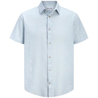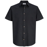 Zwart blend shirt Summer Linen van Jack & Jones voor heren. Dit overhemd is de perfecte combinatie van stijl en comfort voor de warmere dagen. De zwarte kleur geeft het shirt een tijdloze en veelzijdige uitstraling, waardoor je het moeiteloos zowel casual als iets netter kunt dragen. De subtiele structuur van de stof zorgt voor een moderne look met een luchtige feel.
