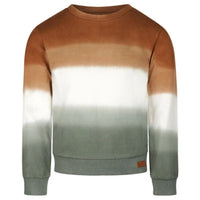 Donkerbruin geprinte sweater O56889 van Koko Noko voor jongens. Deze comfortabele sweater heeft een regular fit met lange mouwen en een ronde hals, en valt op door de coole ombre print in groen- en bruintinten. Die subtiele kleurverloopprint geeft de trui een moderne, stoere uitstraling die perfect aansluit bij kids die van speelse details houden.