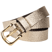Gouden luxe metallic riem 20294 van Legend voor dames. Deze riem heeft een luxe en moderne uitstraling dankzij de goudkleurige metallic afwerking en de subtiele structuur in het leer. Het ontwerp oogt verfijnd en stijlvol waardoor de riem een echte eyecatcher is binnen elke outfit. De goudkleurige gesp sluit mooi aan bij het metallic effect en zorgt voor een elegante afwerking met een tijdloos karakter.