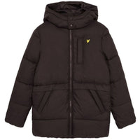 Zwarte Ripstop Quilted Puffer Coat van Lyle & Scott voor jongens. Deze jas is voorzien van een gewatteerde structuur, ritssluiting en een vaste capuchon voor optimale warmte. Deze zwarte jas is gemaakt van stevig ripstop-materiaal en afgewerkt met steekzakken en het kenmerkende logo op de borst. Ideaal voor koude dagen dankzij het warme, comfortabele design met een stoere uitstraling