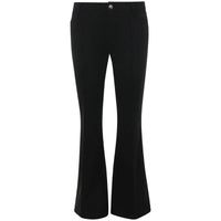 Zwarte broek Dream Boot Luxury van MAC voor dames. Deze elegante broek combineert een stijlvolle uitstraling met uitzonderlijk draagcomfort. De bootcut fit met licht uitlopende pijpen zorgt voor een vrouwelijk silhouet dat mooi in balans is en de benen optisch verlengt. De mid/high rise taille sluit perfect aan en biedt een flatterende pasvorm die geschikt is voor elk figuur. De diepe zwarte kleur geeft de broek een tijdloze, luxueuze look die zowel klassiek als modern oogt.