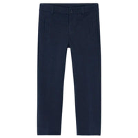 Donkerblauwe interlock trousers van Mayoral voor jongens. Deze comfortabele broek is vervaardigd uit zachte en rekbare interlock-stof, voor een fijne draagervaring gedurende de dag. Voorzien van een verstelbare elastische tailleband en knoopsluiting voor een perfecte pasvorm en handig gebruik. Het tijdloze donkerblauwe design maakt deze trousers veelzijdig en eenvoudig te combineren.