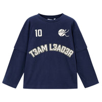 Donkerblauwe longsleeve met backprint Team van Mayoral voor jongens. Deze stoere longsleeve is een perfecte keuze voor elke dag. De donkerblauwe kleur en de opvallende backprint geven het shirt een sportieve uitstraling die goed past bij actieve jongens. De ronde hals en lange mouwen zorgen voor een comfortabele pasvorm, terwijl de zachte katoenen stof prettig aanvoelt op de huid. Het eenvoudige ontwerp met een opvallende print maakt dit shirt gemakkelijk te combineren met verschillende outfits.