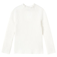 De witte ribbed ruffle mockneck van Mayoral is een veelzijdige trui die zowel casual als netjes gedragen kan worden. Perfect voor school, familie-uitjes of feestelijke momenten. Combineer haar met een rok, jeans of salopette voor een lieve en modieuze look die moeiteloos stijl en comfort samenbrengt.