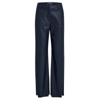 Donkerblauwe PU pantalon Tasja van Minus voor dames. Met deze stijlvolle pantalon voeg je direct een trendy en eigentijdse touch toe aan je look. De Tasja heeft een mid waist fit en een wide model dat zorgt voor een flatterend silhouet en extra comfort. Dankzij de donkerblauwe kleur oogt de broek net iets zachter dan zwart, maar blijft hij toch krachtig en veelzijdig.