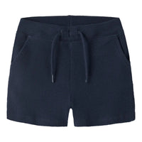 Donkerblauwe regular fit short Harve van Name it voor jongens. Deze short heeft een stoere en tijdloze uitstraling dankzij de diepe donkerblauwe kleur en de subtiele structuur van de jacquard stof. De fijne textuur geeft de short een luxe en verzorgde look, waardoor hij makkelijk zowel casual als iets netter te dragen is.