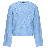 Blauwe knitted cable sweater Katy van NoBell voor meisjes. Deze trui combineert stijl en comfort op een perfecte manier en is een echte musthave voor het najaar. Het opvallende kabelpatroon geeft de sweater een elegante uitstraling, terwijl de zachte gebreide stof heerlijk warm en comfortabel aanvoelt. Zo is de trui niet alleen trendy, maar ook praktisch voor frisse dagen.