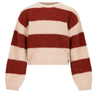 Rode colorblock knitted sweater Kate van NoBell voor meisjes. Deze opvallende meisjestrui is een echte eyecatcher dankzij de stoere colorblock strepen in roodtinten. Het gebreide design voelt heerlijk zacht aan en houdt je warm op frisse dagen. Ideaal voor meiden die houden van een comfortabele sweater met een modieuze uitstraling.