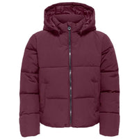 Bordeauxrode puffer jacket Dolly van Only voor meiden. Deze korte winterjas is een must-have voor de koudere dagen en combineert een trendy uitstraling met optimaal draagcomfort. Uitgevoerd in een warme bordeaux tint straalt de jas stijl en klasse uit, terwijl de glanzende crinkle-stof zorgt voor een speelse, moderne touch. De hoge kraag beschermt goed tegen wind en kou en geeft de jas een stoer accent. Dankzij de praktische ritssluiting en de handige steekzakken is deze jas niet alleen fashionable, maar ook functioneel.