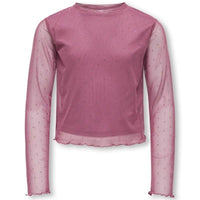Roze longsleeve Jada Rhinestone van ONLY voor meiden. Deze stijlvolle top is perfect voor jonge fashionliefhebbers die houden van een vleugje glamour in hun outfit. De zachte roze kleur en glinsterende rhinestones geven de longsleeve een speelse en trendy uitstraling. De regular fit zorgt voor een comfortabele pasvorm, terwijl de ronde hals en slim fit mouwen het geheel een moderne, flatterende look geven. De meshdetails voegen een subtiel en modieus accent toe dat de top extra bijzonder maakt.