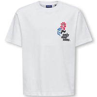 Wit relax fit t-shirt Fred Laurent van Only & Sons voor jongens. Dit frisse t-shirt is een ideale basic voor elke jongen en combineert comfort met een tijdloze uitstraling. De witte kleur geeft een schone, heldere look en maakt het gemakkelijk te combineren met verschillende broeken en sneakers. Het relaxte model zorgt voor een moderne, casual stijl die geschikt is voor school, sport of vrije tijd.