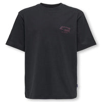 Zwart backprint t-shirt Alfresco van Only & Sons voor jongens. Dit stoere t-shirt is een echte musthave voor jongens die houden van een moderne, streetstyle uitstraling. Het shirt is gemaakt van zacht katoen en heeft een relaxed fit, waardoor het comfortabel zit en veel bewegingsvrijheid biedt. De ronde hals en korte mouwen maken het een tijdloos item dat je makkelijk combineert met andere kledingstukken.