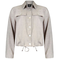 Het model is voorzien van een klassieke kraag, een knoopsluiting aan de voorkant en twee borstzakken die zorgen voor een speels en eigentijds effect. De licht getailleerde pasvorm en de verstelbare onderzijde met koord geven je de mogelijkheid om het jasje naar wens te stylen. De stof voelt stevig maar comfortabel aan, waardoor het perfect is als tussenjas of als extra laag op frisse dagen.