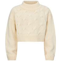 Beige gebreide cropped knit Anna van Retour Jeans voor meiden. Deze trendy trui uit de wintercollectie is de perfecte mix van cozy en stijlvol. Het cropped model geeft de knit een eigentijdse uitstraling en maakt hem ideaal om te combineren met een hoge taille jeans of een rokje. De hoge kraag en de speelse structuur in het breisel zorgen voor een stoere en toch vrouwelijke look. Daarmee is dit knitwear item een echte eyecatcher die niet mag ontbreken in de garderobe van jouw dochter.