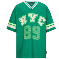 Lichtgroen oversized t-shirt Ida van Retour Jeans voor meiden. Dit sportieve shirt uit de wintercollectie is een echte musthave voor meiden die houden van een trendy en comfortabele look. Het oversized model geeft een relaxte uitstraling en valt nonchalant langs het lichaam, terwijl de opvallende NYC-print op de voorkant het geheel een stoere touch geeft. De V-hals en contrasterende strepen op de mouwen versterken de sportieve look en maken dit t-shirt perfect voor alledaagse outfits.