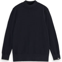 De donkerblauwe mock neck pullover regular fit van Scotch & Soda voor jongens is perfect voor school, familiebijeenkomsten of een dag in de stad. Een veelzijdige en elegante trui die comfort en stijl moeiteloos weet te combineren.