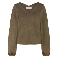 Gouden glitter top Claudina sparkle van Studio Anneloes voor dames. Deze sprankelende top is een stijlvolle keuze voor feestelijke momenten en elegante gelegenheden. De vrouwelijke v-hals, subtiele glans en verfijnde afwerking geven elke outfit een chique uitstraling. De glinsterende stof vangt het licht op een subtiele manier, waardoor de top bij elke beweging straalt zonder te overheersen. Dankzij de regular fit valt de Claudina sparkle top soepel langs het lichaam en biedt ze volop draagcomfort.