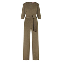 Gouden jumpsuit Odessi sparkle van Studio Anneloes voor dames. Deze sprankelende jumpsuit is ontworpen voor vrouwen die comfort en elegantie willen combineren met een vleugje glamour. De warme gouden kleur en subtiele glitters geven direct een feestelijke uitstraling, terwijl de soepel vallende stof zorgt voor een vrouwelijke en verfijnde look. Dankzij de v-hals en de bijpassende ceintuur wordt het silhouet mooi geaccentueerd en oogt de jumpsuit extra stijlvol.