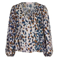 Multicolor top Kylie satin van Studio Anneloes voor dames. Deze elegante top van 100% viscose heeft een glanzende satijnkwaliteit en een speelse stippenprint in Off White, Camel, Dark Blue en Ink Blue. Met pofmouwen, elastische manchetten en een flatterende v-hals combineer je de Kylie moeiteloos chic met een pantalon of casual met jeans en sneakers.