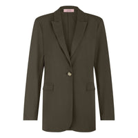 De groene kleur New Army geeft de blazer een moderne en stoere uitstraling, terwijl de boyfriend look zorgt voor een eigentijds en ontspannen silhouet. De schoudervullingen versterken de krachtige vorm, en de praktische klepzakken voegen een nonchalant detail toe. De regular fit biedt voldoende ruimte voor comfort, zonder de vrouwelijke lijnen te verbergen.
