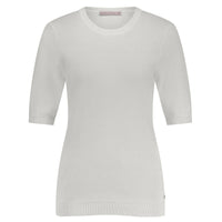De offwhite kleur geeft de pullover een frisse en lichte uitstraling en vormt een perfecte basis binnen elke garderobe. Deze tint laat zich moeiteloos combineren met zowel neutrale als meer uitgesproken kleuren. De Travel Knit kwaliteit staat bekend om haar vormvastheid en comfort waardoor de pullover mooi in model blijft en prettig draagt gedurende de hele dag. De korte mouwen maken dit item ideaal voor verschillende seizoenen en zorgen voor een moderne look.
