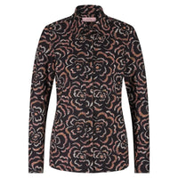Zwart geprint shirt Poppy marker van Studio Anneloes voor dames. De Poppy marker blouse is een elegante en speelse variant van de welbekende Poppy. Dit model heeft een licht getailleerde pasvorm die je silhouet flatteert en is uitgevoerd in een multicolor print waarin zwart en blush roze tinten prachtig samenkomen. De klassieke kraag en knoopsluiting geven de blouse een tijdloze uitstraling, terwijl de lange mouwen met manchetten zorgen voor een verzorgde afwerking.