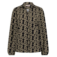 Zwart shirt Eden signature van Studio Anneloes voor dames. Shirt in de signature print van Studio Anneloes in de kleuren Latte en Black. Voorzien van een kraagje met v-hals, blinde knoopsluiting en lange mouwen. Met elastische manchetten. Gemaakt in de Heavy Travel Quality van Studio Anneloes. Uit de Saddle Chic-collectie.
