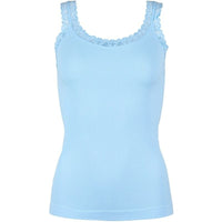 Ivoorwitte micro fiber rib top Frida van Tim&Simonsen voor dames. Deze tijdloze top straalt zachtheid en verfijning uit dankzij de soepele microfiberkwaliteit met subtiele ribstructuur. De stof voelt zijdezacht aan op de huid en biedt dankzij de stretch een perfecte, aansluitende pasvorm. De ronde hals is afgewerkt met een delicate kanten rand die de top een vrouwelijke en elegante uitstraling geeft. De ivoorwitte kleur zorgt voor een frisse en luxe look die gemakkelijk te combineren is.
