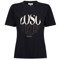 Zwart travel t-shirt met print Selma van ZOSO voor dames. Dit veelzijdige t-shirt is gemaakt van de comfortabele en duurzame travelstof die bekendstaat om zijn fijne stretch, kreukvrije eigenschappen en ademend vermogen. Het shirt heeft een klassieke ronde hals en korte mouwen, waardoor het een tijdloze basic is met een moderne twist. De subtiele print aan de voorkant voegt een speels en eigentijds detail toe, waardoor dit item net dat beetje extra karakter krijgt.